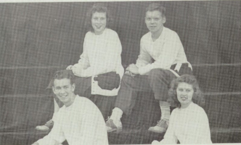 These days, he would be considered ADHD. Back in those days, he was simply hyperactive. Mama told us he was one of two boys on the high school cheering squad. (He’s the guy on the top right).